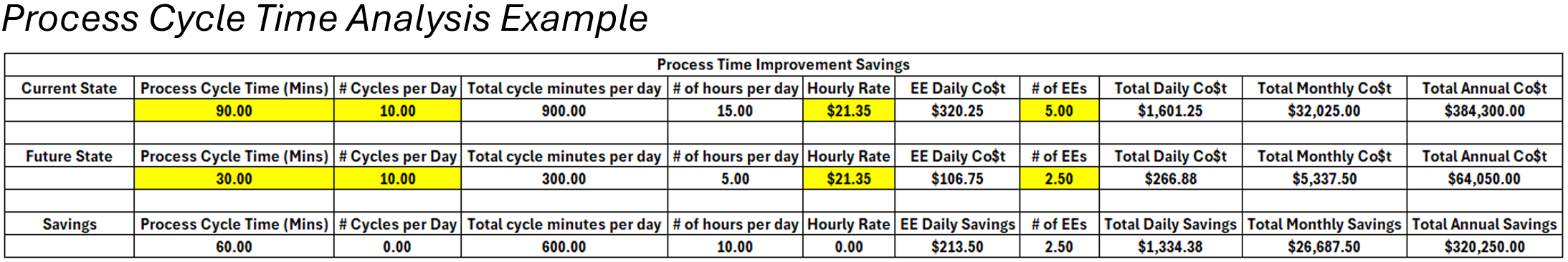 Process Cycle Time Analysis Example
